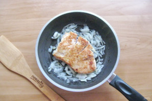 Peel the onion, wash it, and finely chop. Place in a frying pan.