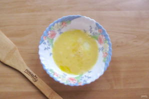 Pour the mixture of eggs and soy sauce over it. Cover with a lid and cook like a regular omelet.