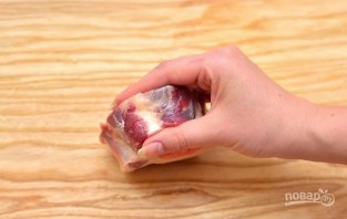 Wash the piece of meat with bone and dry it thoroughly. I usually take a bone-in fillet about 4 cm high. This allows the meat to be cooked perfectly to "medium rare" doneness.