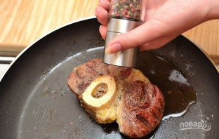 Sear the meat on both sides until a nice crust forms (about 1 minute per side). Then season with salt and pepper to taste.