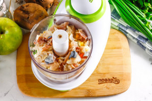 Тщательно измельчите все содержимое емкости в течение 2-3 минут, превращая его в пюреобразную массу.
