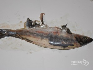 Почистим селедку. Удалим голову и внутренности, снимем кожу и максимально удалим все кости.