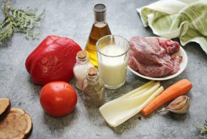 Подготовьте все необходимые ингредиенты для приготовления фрикасе из индейки с овощами. Овощи хорошо вымойте и дайте воде стечь. Филе индейки сполосните и обсушите.