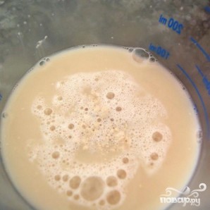Смешайте 1/2 столовой ложки дрожжей и 1 чайную ложку сахара в 1/2 стакана теплой воды и оставьте на 10 минут.