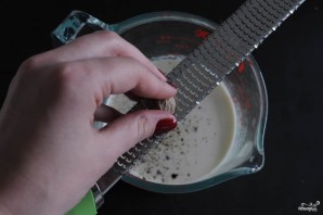 Mix the cream and milk, add grated nutmeg.