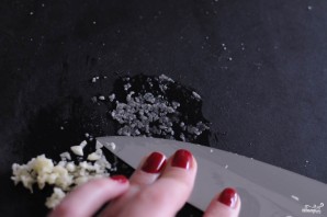 Finely chop the garlic. You can use a garlic press for this. Add the garlic to the milk and cream mixture.