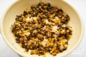 Heat vegetable oil in a frying pan and sauté the onion until golden brown.