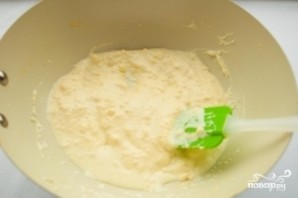 Pour the cream into the flour. Mix thoroughly and cook over low heat, without bringing to a boil.