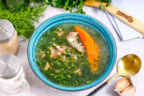 Wait for the sound signal, remove the meat and vegetables from the broth, and strain the liquid. Separate the meat from the bones, place it into bowls, add the vegetables and plenty of chopped fresh herbs previously washed. Pour in the hot broth and serve the hash immediately while hot.