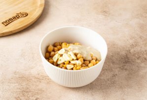 Измельчите до однородности. Затем добавьте оливковое масло, соль и чёрный молотый перец. Ещё раз пробейте блендером. Если химус получается слишком плотным, то добавьте ещё оливкового масла или жидкости, в которой варился нут.