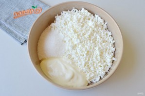 9. Для начинки нужно соединить творог с сахаром и сметаной. Добавить капельку ванильного экстракта или эссенции. Творог обязательно протрите через мелкое металлическое сито или терку.