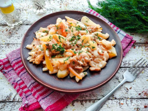 Stew with pasta is quite an unconventional dish. Despite the ingredients seeming incompatible, it turns out very tasty. To prepare this stew with pasta, you'll need the simplest and most accessible ingredients. Many home cooks love this dish because it takes very little time to prepare. Stew with pasta will be a great addition to your everyday menu and can be served both for lunch and dinner.