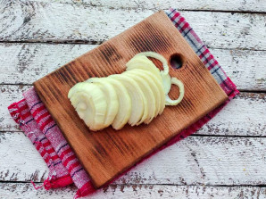 Take a medium-sized onion, peel off the skin, and slice it into half-rings.