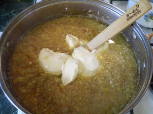 Также добавляем томатную пасту. Перемешиваем, варим еще 30 минут.