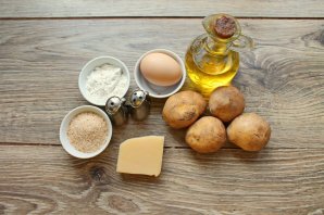 Подготовьте все необходимые ингредиенты для приготовления картофельных зраз без начинки.
