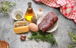 Говядину очистите от пленок, порежьте на куски и вместе с салом дважды пропустите через мясорубку с мелкой решеткой. Выложите фарш в чашу и добавьте тертый на средней терке сыр.