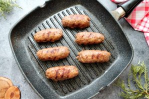 Сковороду гриль смажьте растительным маслом и разогрейте на среднем огне. Выложите кебабы и обжаривайте по 4 минуты с четырех сторон, до готовности. Готовые кебабы снимите с огня и подавайте.