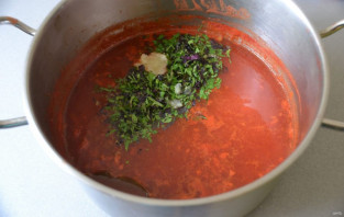 Add the garlic and herbs about 10 minutes before the ketchup is ready.