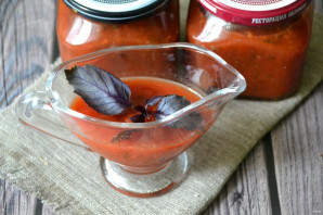 Homemade sauce recipe. Making ketchup from tomatoes and plums is very easy—just follow the step-by-step instructions. Add your favorite spices and seasonings to taste for a completely unique flavor. Perfect served with pasta, meat, and vegetables.