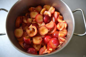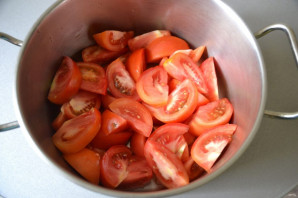 Place the tomatoes, cut into slices, into a saucepan with a thick bottom.