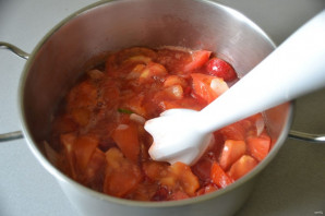 As soon as the juice appears and the mixture settles slightly, blend it with an immersion blender.