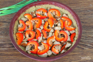 Перец нарезаем тонкими дольками и кладем сверху.