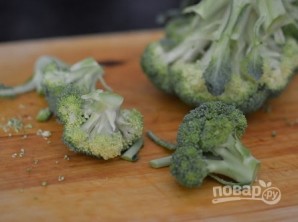 Брокколи разбираем на небольшие соцветия и бланшируем в кипящей воде минуты 3-4.