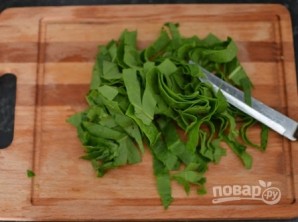 Шпинат помоем, обсушим и нарежем. Если вы не любите шпинат, его можно и не добавлять.