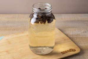 Add coffee and a handful of raisins to the jar. Let it steep for 3 hours.