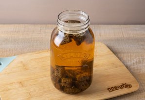 Add rye croutons. Leave for 1-1.5 hours until the water becomes warm.