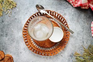 Add the sugar syrup to the glass and stir with a bar spoon. Pour the "Buravchik" cocktail into a glass without ice and serve immediately.