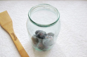 Wash the plums and place them into a sterilized jar. Whether to preserve them whole or halved is up to you.