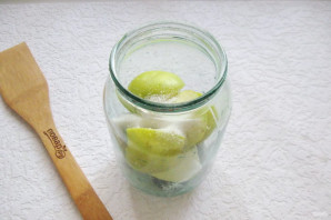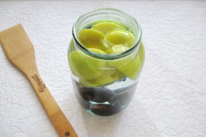 Pour boiling water over the fruits, cover with a lid, and let stand for about 20 minutes. Then drain the water into a saucepan and bring to a boil again.