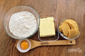 Сливочное масло разотрите с мукой и солью в крошку. Добавьте желток и нутовое пюре, перемешайте, соберите тесто в шар. Заверните в пищевую пленку, оставьте в холодильнике на 20 минут.