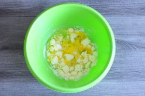 Соедините в чаше мягкое сливочное масло с сахаром. Разотрите с помощью вилки.