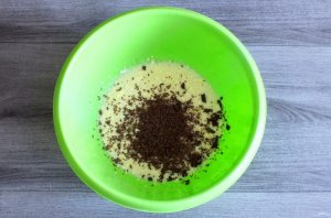 Натрите шоколад на мелкой тёрке, добавьте в чашу.