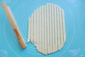 Третью часть теста достаньте из холодильника и нарежьте полосками.