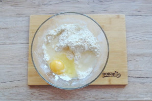 Перемешайте муку, сахарную пудру, соль, ванильный сахар и сливочное масло в крошку. Добавьте яйцо и ледяную воду.