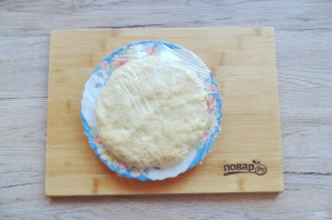Все ингредиенты теста соедините в ком, долго месить не нужно. Накройте пищевой пленкой и отправьте в холод на час.