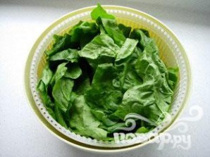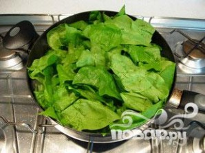 Вымыть шпинат. У каждого из них удалить стебель.