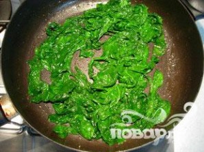 В сковороде растопить кусочек масла. Положить весь шпинат сразу.