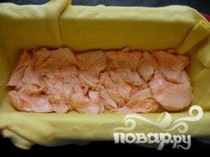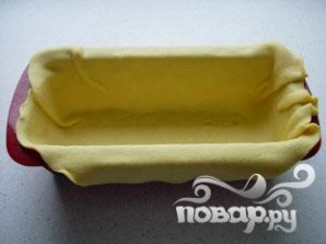 По истечении этого времени достать из холодильника и положить в форму смазанной стороной вниз.