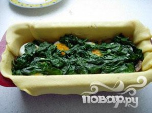 Выпечка готовится просто и быстро. Кулебяка - традиционное русское блюдо со сложной начинкой. Существует несколько вариантов основной начинки пирога, а так же различных способов по ее укладке. Кулебяка это тяжелый пирог, начинка занимает более 50 процентов веса от всего блюда. Пирог можно подавать в качестве закуски, главного блюда или дополнения к основному кушанью. В классическом варианте пирог готовится с начинкой из нескольких видов фарша. В этом рецепте мы готовим кулебяку начиненную лососем, рисом, яйцами и шпинатом Выпечка готова. Подавайте к столу.