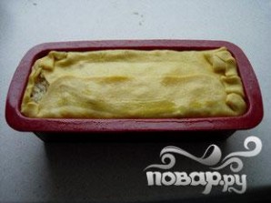 Закройте пирог краями теста. Оставьте небольшое отверстие для выхода пара.