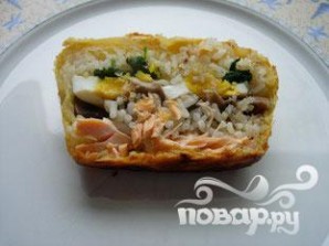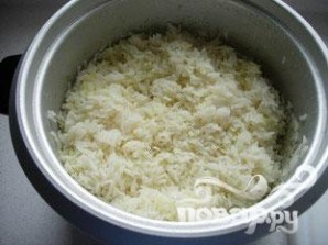 Накрыть слоем риса.