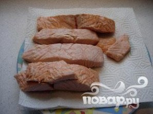 Положить слой лосося.
