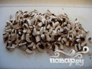 убрать ножки и кожуру у грибов.