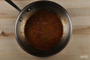 5. Prepare the sauce. In a saucepan, bring to a boil demi-glace, 60 ml of water, and shallot. Then simmer the mixture for 2 minutes, stirring.