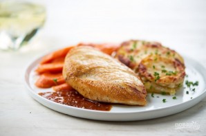 6. Serve the chicken with potatoes and carrots. Add sauce on the side.