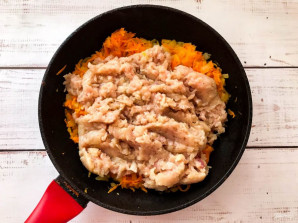 Add the minced meat to the vegetables and fry for 10-12 minutes.